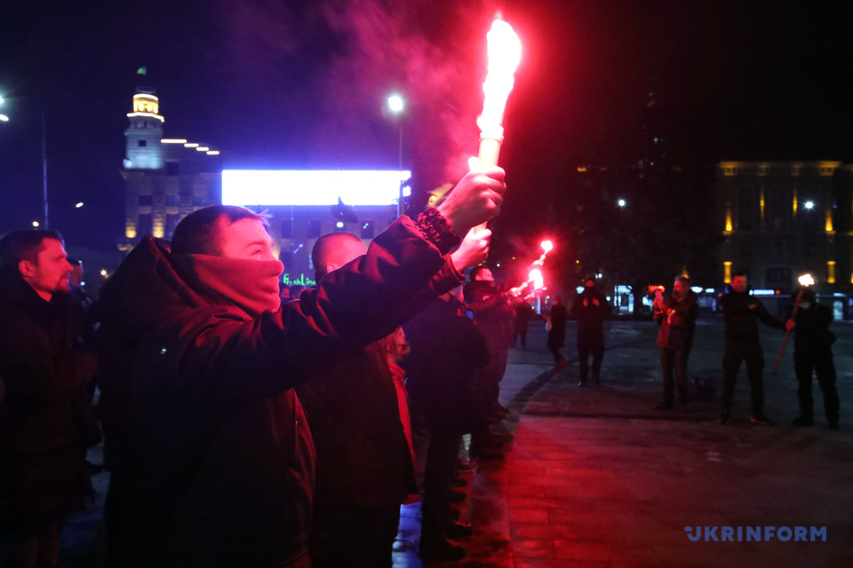 Как сообщал Укринформ, вечером 29 января в центре Харькова состоялось шествие с файерами с участием около 2 тысяч активистов "Национального корпуса" и партии "Демократична сокира".