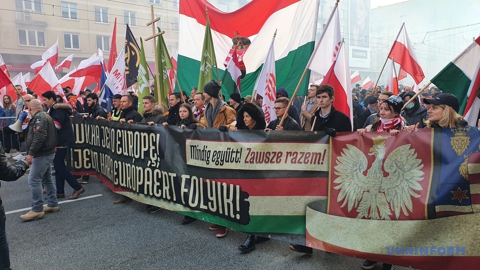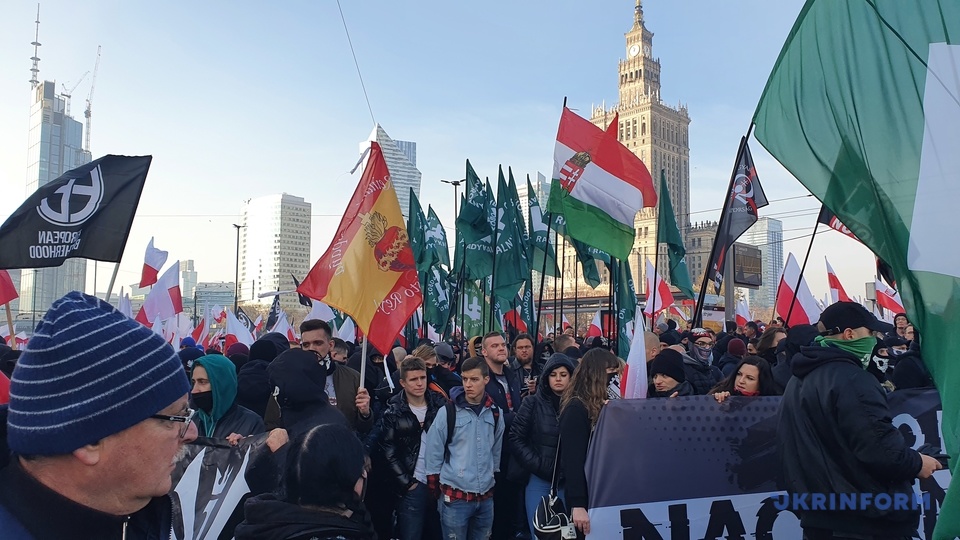 В марше приняли участие представители националистических организаций Польши, таких как Общепольская молодежь, Национальное движение, Национально-радикальный лагерь и многие другие, передает корреспондент Укринформа.